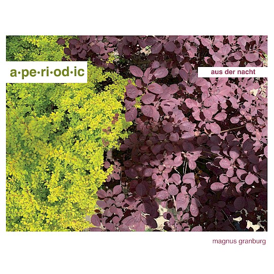 a·pe·ri·od·ic is a Chicago-based experimental music ensemble founded in 2010 and directed by Nomi Epstein featuring post-Cagean notated, experimental music. Their second release on New Focus features an album length work by Magnus Granburg written for the ensemble, Aus der Nacht, von den Wehen, a forty five minute episodic work comprised of 71 distinct sections that explore subtle changes in attack, decay, resonance, and pitch, using an indeterminate notation to inject variability into its performance.