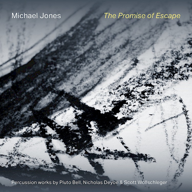 Michael Jones’ The Promise of Escape is a rich addition to the growing repertoire of expansive solo percussion works that focus on timbre, sustain, and texture. Often, and for many years, percussion music has celebrated a kind of vigorous physicality, but quietly behind the scenes, a counterbalancing trend has been growing. These three works by Pluto Bell, Nicholas Deyoe, and Scott Wollschleger represent that subtler, inward looking impulse in percussion writing, and document the cultivation of an alternative virtuosity for the instrument. A few New Focus releases by solo percussionists come to mind as contributors to this space as well: Haruka Fujii’s Ingredients, Greg Stuart’s Subtractions, and Christopher Whyte’s Cold Stability. On this collection, Michael Jones brings his own artistry and sensibility to these substantial works, two of which (Bell and Wollschleger) are the result of his own commissions.